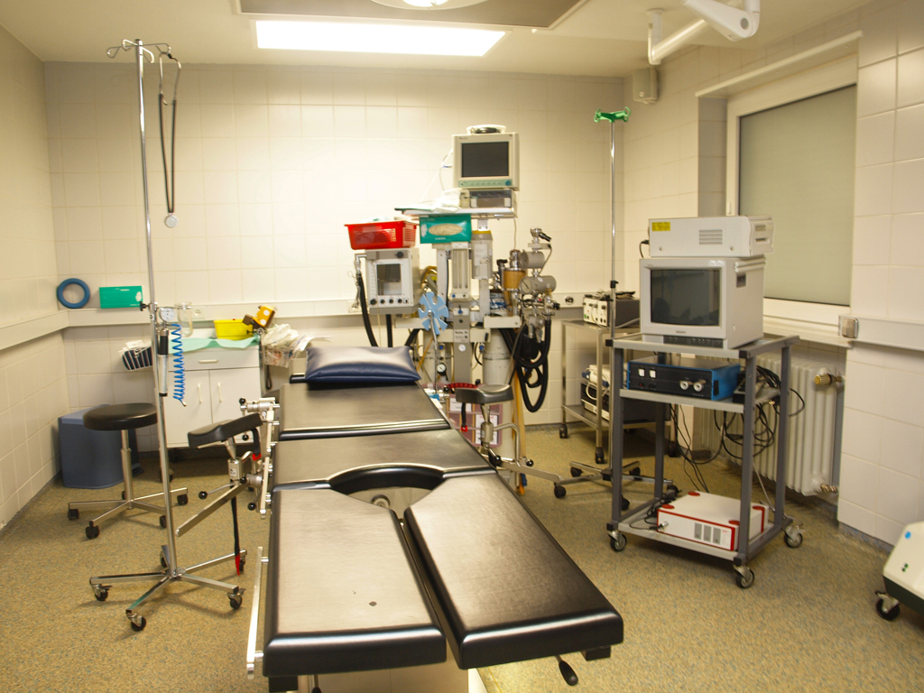 Operationssaal ist mit einer zentralen Narkosegasanlage und Reinlufttechnik